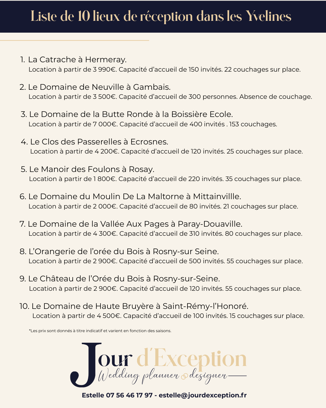 Future mariée, si tu souhaites connaître la liste de 10 domaines dans les Yvelines.